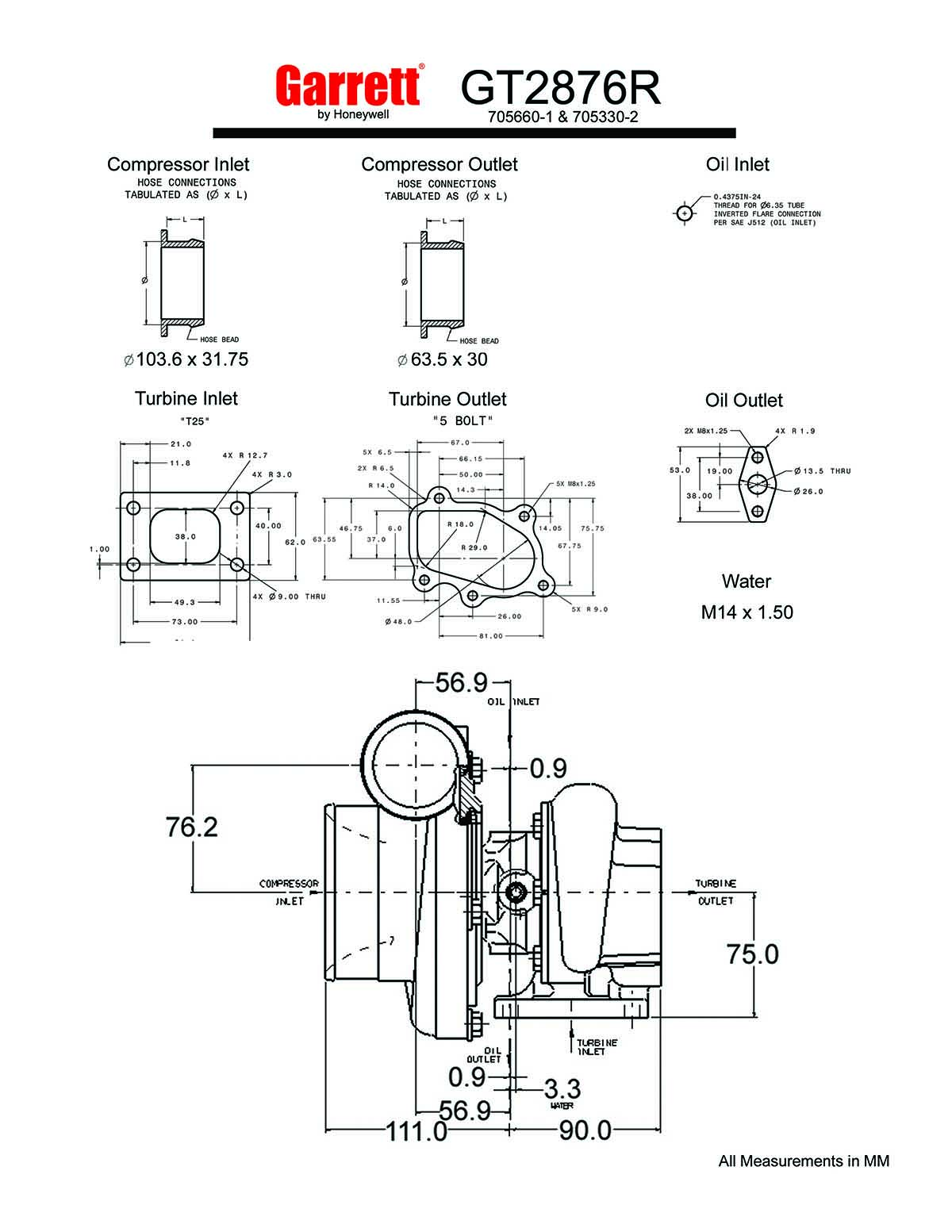 GT2876R Garrett Turbocharger 0.64 A/R 836026-5022S / 705330-5001S