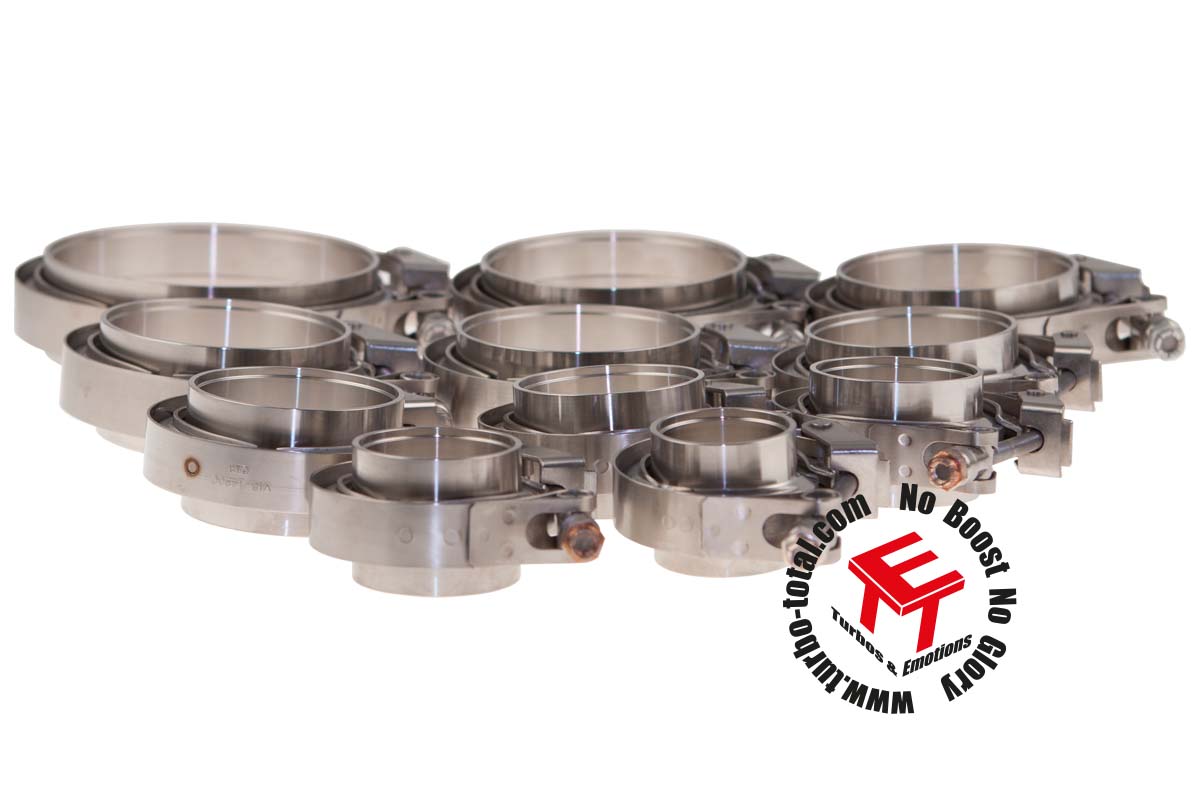 Dieser V-Band Kit ist speziell für den Bau von Turbolader- Auspuffsystemen ausgelegt. Die verwendeten Materialien halten die hohen Temperaturen im Bereich des Turboladers ohne Probleme Stand. Die Edelstahl-Kits sind als komplette Verschraubungen an Auspuff und Wastegate-Leitungen einsetzbar. Der Schnellverschluss ermöglicht ein einfaches Montieren der Verschraubung. Die Flansche sind als Männchen/Weibchen-Ausführung ausgelegt und sind selbstzentrierend. Die Hochtemperaturmutter ist selbstsichernd und dauerhaft betriebssicher. Das Auspuffrohr lässt sich in die vorgefertigte Nut zentriersicher einstecken und verschweißen.
